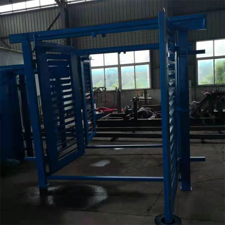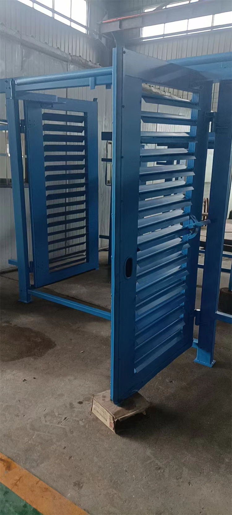 两扇风门分别向两个方向开启,通过连杆和支撑臂实现联动。