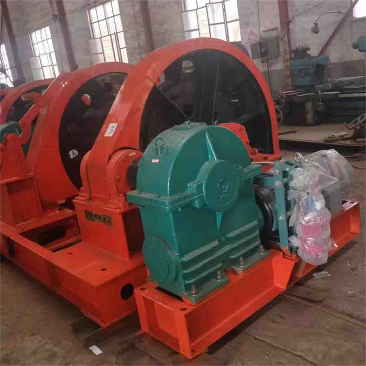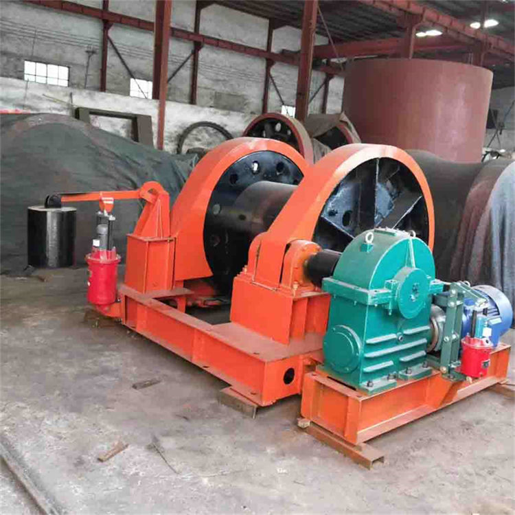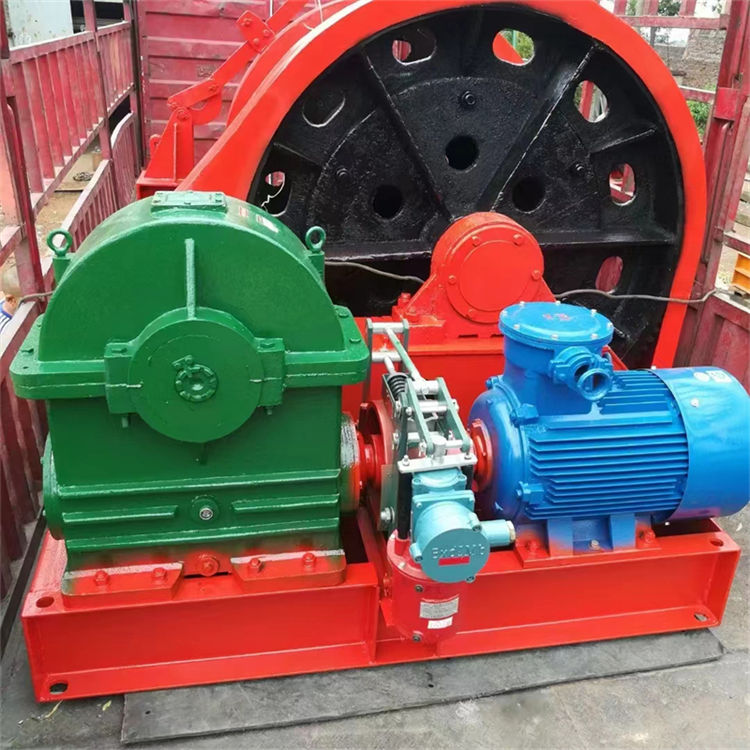 凿井绞车结构为缠绕式,主要由主轴装置、减速器、带制动轮的弹性联轴器、工作制动器、安全制动器、机座、电动机等部件组成。