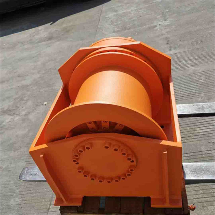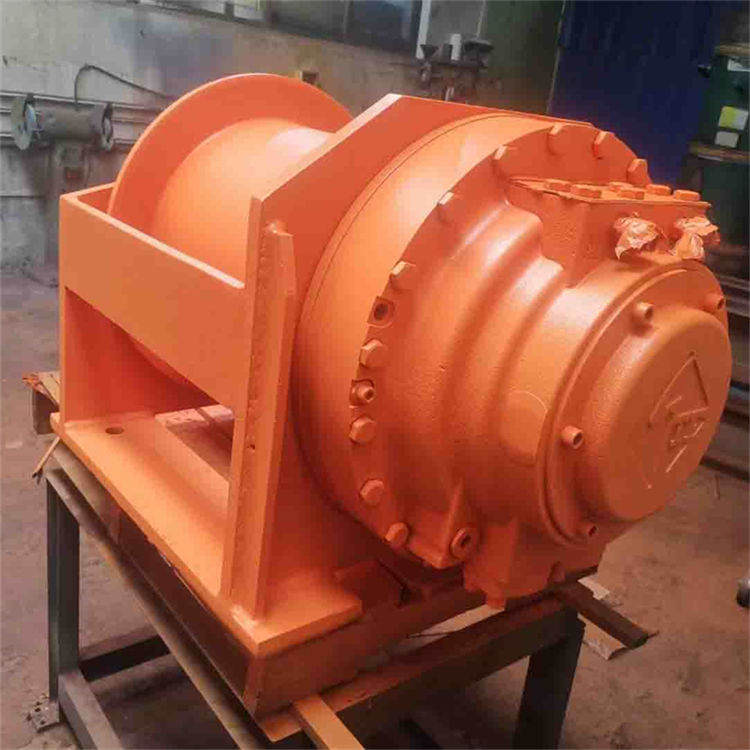 液压绞车由液压马达、制动器、行星减速器、卷筒、机架等部件构成,用户只需配备液压泵站和换向阀即可使用。由于液压绞车可自带阀组,它不但简化了液压系统且提高了传动装置的工作可靠性。当配双速马达时,绞车具有两档速度可调,提高了调速范围。