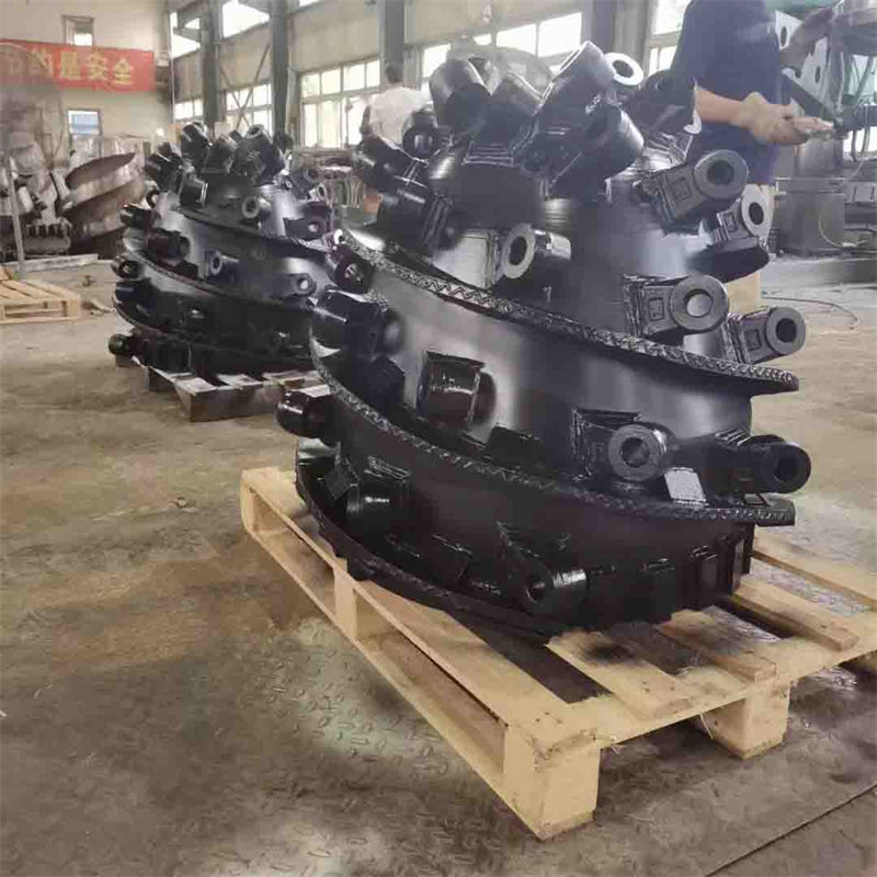 采煤机截割部由固定减速箱、摇臂、滚筒、挡煤板及调高系统组成。截割部的作用是将电动机的动力经过减速后,传递给截割滚筒,以进行割煤,并且通过滚筒上的螺旋叶片将截割下来的煤装到工作面输送机上。为提高螺旋滚筒的装煤效果,在滚筒后面还装有挡煤板。