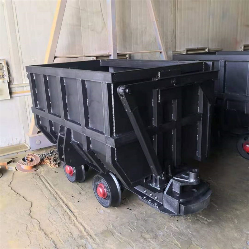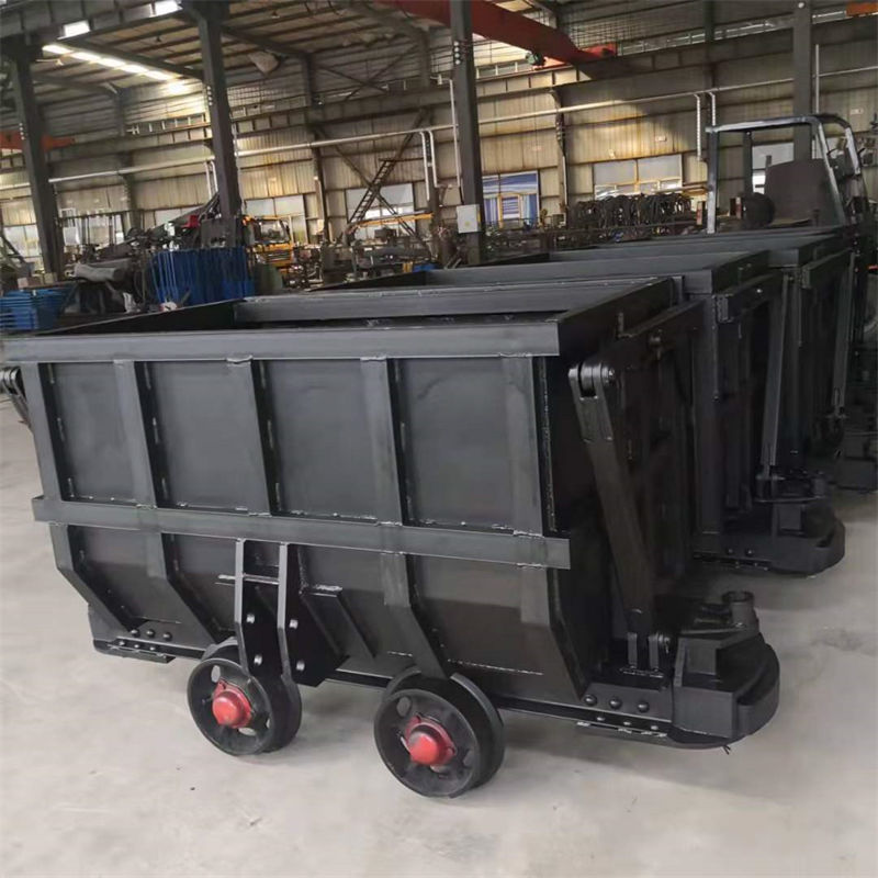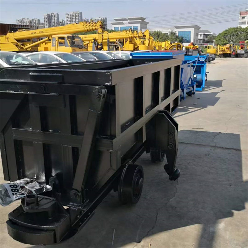 单侧曲轨侧卸式矿车是由车轮组、车架、销轴、车厢、卸载曲轨、翻卸轮、销轴、门钩、车厢门、支撑铁拉杆等部件组成。轨距为600mm、762mm、900mm三种,供用户选择。